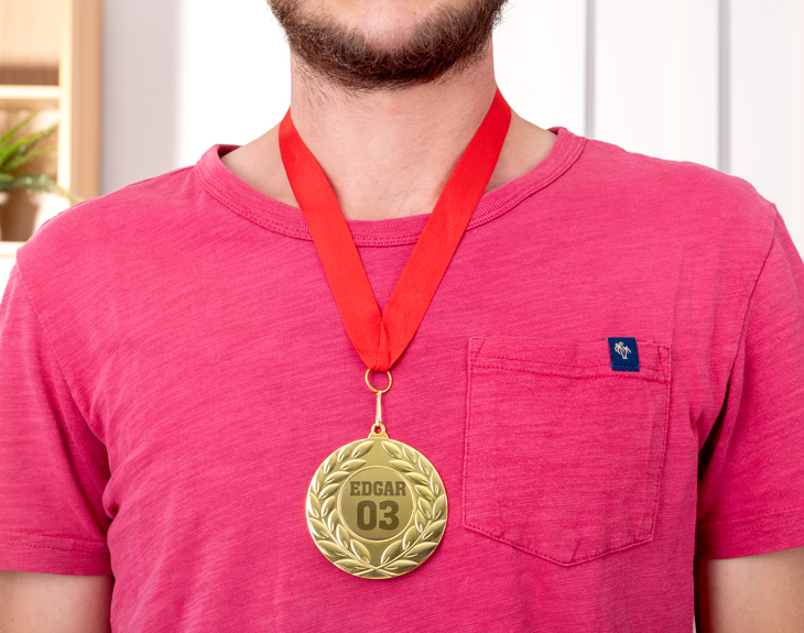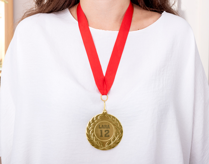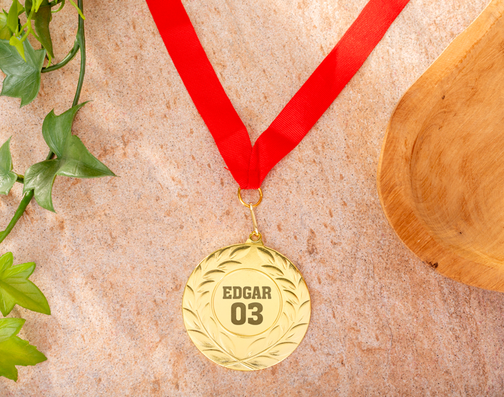 ¿Estás buscando un reconocimiento especial para un evento? Esta medalla metálica personalizada no es un simple premio: es un símbolo de esfuerzo, dedicación y orgullo. Quien la reciba se sentirá verdaderamente especial. Fabricada en metal y con un diseño clásico en relieve que incluye hojas de laurel, esta medalla dorada grabada destaca por su elegancia y valor emocional. Puedes personalizarla con un nombre, un número como una posición o incluso un año, convirtiéndola en un detalle único y original para la persona galardonada. Es ideal para reconocimientos escolares o académicos, así como para celebraciones internas en eventos corporativos. Además, incluye una cinta de poliéster en color rojo vibrante, suave y cómoda, sujeta con una anilla metálica para colgarla fácilmente al cuello. Te sentirás muy orgulloso al llevarla. Personalizarla es muy fácil: solo tienes que añadirla al carrito y, en el área de diseño, escribir el nombre, número, año o texto corto que desees. Y listo tendrás el premio personalizado más original de todos, y convertirás esa entrega en un momento inolvidable. Material: metal. Peso: 70 gr. Dimensiones: -Alto: 50cm. -Diámetro: 7cm.