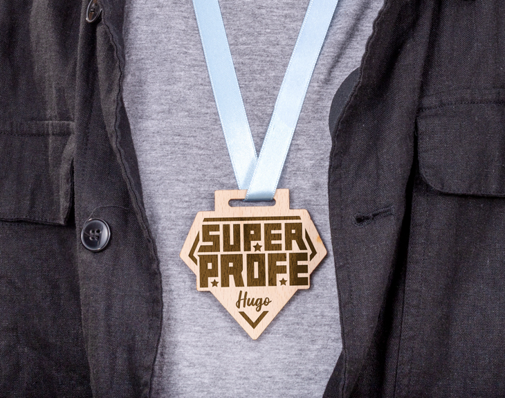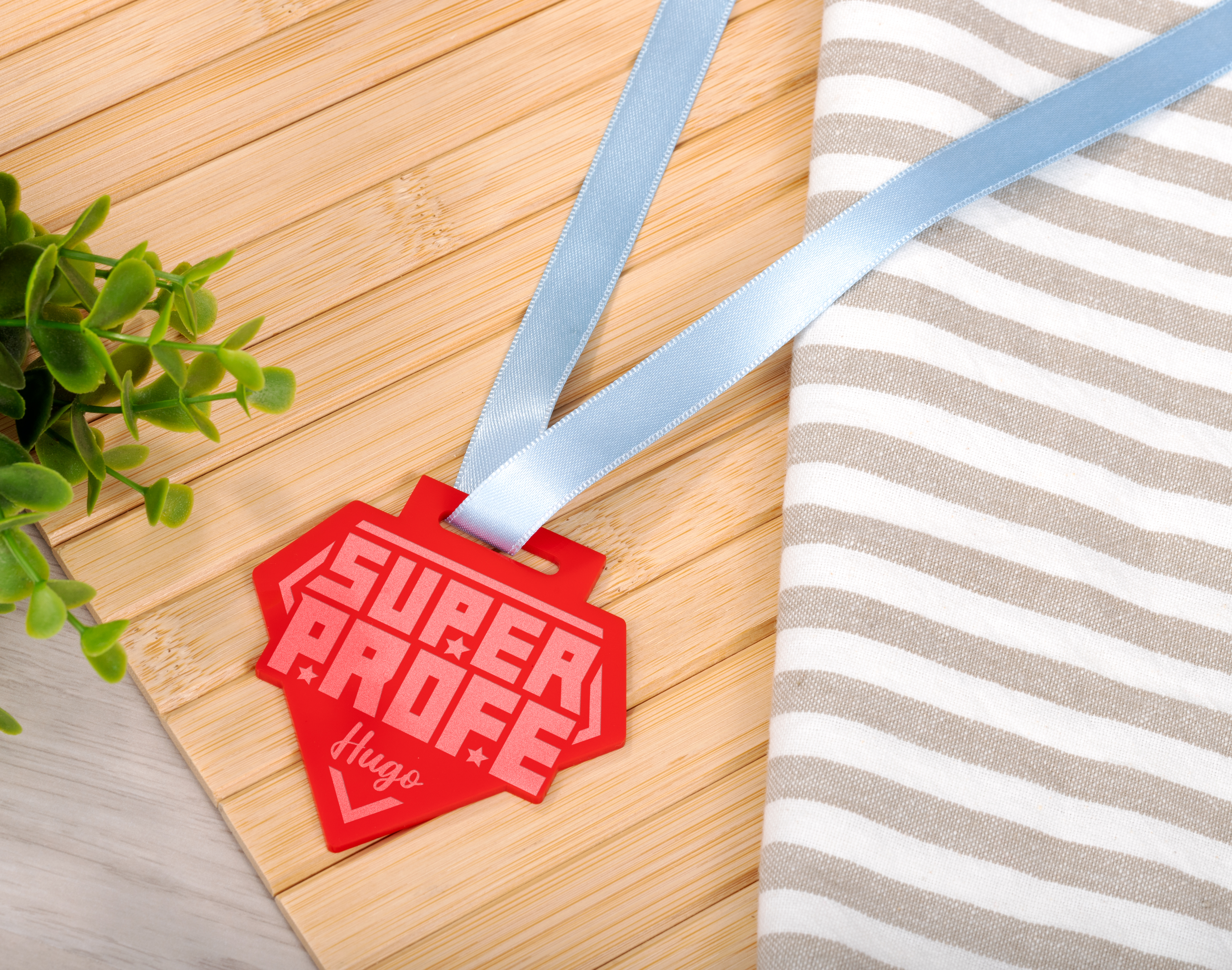 Esta medalla personalizada es el regalo perfecto para ese profe que lo ha dado todo durante este curso escolar y por eso se merece ser reconocido como un superprofe. Sin duda, esta medalla será el detalle perfecto para sorprenderle en fin de curso. ¡Le encantará! Lo mejor de esta original medalla es que podrás crearla totalmente a tu gusto para que cualquier profe que la reciba se quede sin palabras. Podrás elegir entre los dos materiales que tenemos disponibles (madera o metacrilato) y hacer que esta medalla sea única. Personalizar esta medalla es muy sencillo. Entra en el área de personalización, elige el material y completa el diseño con el nombre del profe. Si eliges el metacrilato como material, vas a poder seleccionar qué color te gusta. ¡No habrá un regalo mejor! Diámetro: 7 centímetros. Material: metacrilato o madera.