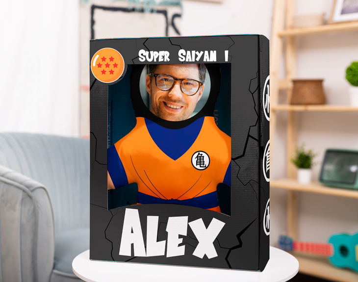 Dragon Ball es la serie que ha marcado la infancia de muchos por excelencia. En el desayuno o con la merienda, todos estábamos enganchados a las aventuras de sus personajes. Y es que este manga ha dado la vuelta al mundo y tiene miles y miles de fan que todos los años se disfrazan de sus protagonistas en fiestas, celebraciones o ferias del manga. Si tú eres uno de ellos o conoces a alguien que lo sea, le encantará tener este muñeco de peluche personalizado con foto del protagonista de Dragon Ball... ¡Goku! Este divertido muñeco es muy blandito y tiene una textura muy suave. Es perfecto para abrazarlo siempre que quieras y tenerlo de adorno por casa para que todos tus invitados lo vean. Este original muñeco es perfecto para todas las edades porque conquistará a pequeños y mayores, y a los más fans de Dragon Ball y Goku. No hay mejor manera de volver a recordar nuestra infancia que con este recuerdo. ¡Es el mejor regalo del mundo! Para personalizar este regalo, únicamente tendrás que subir a nuestro diseñador una foto de la persona que quieras desde cualquier dispositivo, eso sí, te recomendamos escoger una de frente y en la que se vea bien la cara. Además, podrás recortarla para ajustarla mejor al diseño y conseguir un efecto mucho más realista. En cuanto al cuerpo, tiene el famoso traje del protagonista indiscutible de esta serie, el inigualable Goku. Hazte con el muñeco más divertido y haz el regalo más original a esa persona tan especial. Sorprender a esa persona tan especial con un peluche personalizado y hecho a medida mola mucho, pero mola aún más añadirle su propia caja personalizada. El mejor regalo del mundo existe y es este adorable muñeco con caja, que dejará sin palabras a quien lo reciba. ¡Parece que ha salido de cualquier juguetería! Pero sin duda lo mejor de todo es que podrás personalizar esta caja con el diseño que más te guste, escribir tu propio texto y añadir todos los detalles necesarios para que quede genial. ¡Deja volar tu imaginación y crea el regalo perfecto! Además, podrás personalizar este muñeco añadiendo una grabación de voz, eligiendo la opción de “Muñeco con voz”. ¡Podrás incluir la voz o canción que quieras en este muñeco! ¿Cómo se graba el mensaje? ¡Es muy sencillo! Añade el muñeco al carrito y dale al botón de "personalizar". Podrás grabar un mensaje en ese momento (con el micro del móvil o del ordenador) y nosotros nos encargaremos de incluirlo en el peluche. ¡El único límite es tu imaginación! Puedes cantar, ponerte romántico, hacer una proposición... Límite de grabación: 30 segundos. Una vez se reciba el muñeco, habrá que tomar una difícil decisión: se puede repetir el mensaje original (manteniendo pulsado el bracito derecho del muñeco cada vez que quieras escucharlo) o grabar un mensaje nuevo (cada vez que mantengas pulsado el bracito izquierdo del muñeco). Medidas del muñeco: 50x35 cm. Material: poliéster.