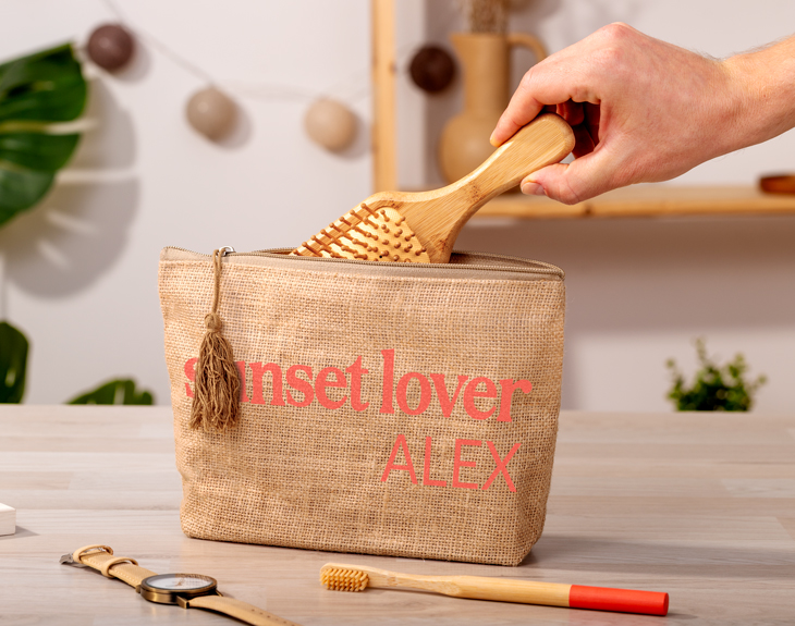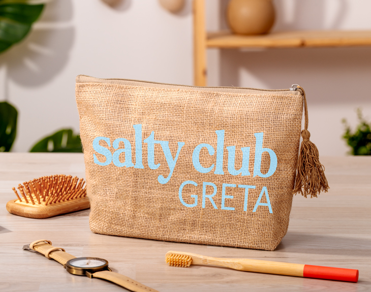 • Neceser arpillera personalizado. • Tarjeta Recordatoria.