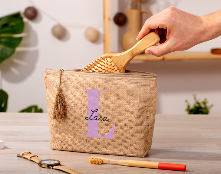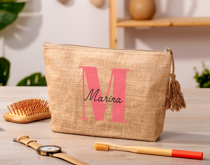 ¡El accesorio definitivo ha llegado! Si necesitas guardar todas tus cosas de aseo cuando te vayas de viaje, este neceser personalizado es perfecto para ti. Tiene el tamaño ideal para meter en él todo lo necesario para varios días fuera de cas ay eso es lo que hace que sea de lo más práctico. Sin duda, este original neceser no podrá faltar en tu maleta en el próximo viaje. Además, su material le aporta un toque rústico que lo hace único y muy guay. Podrás guardarlo donde tú quieras: en la maleta, en una mochila, en el bolso... ¡Es el accesorio todoterreno! Y lo mejor es que podrás personalizar este neceser con tu inicial y tu nombre para que no pase desapercibido. Entra en nuestro diseñador, elige el color de la inicial, escribe tu nombre y estará listo para ver mundo contigo. ¡Será tu mejor aliado! Medidas: 25 x 16,5 x 6,5 cm. Material: Arpillera.