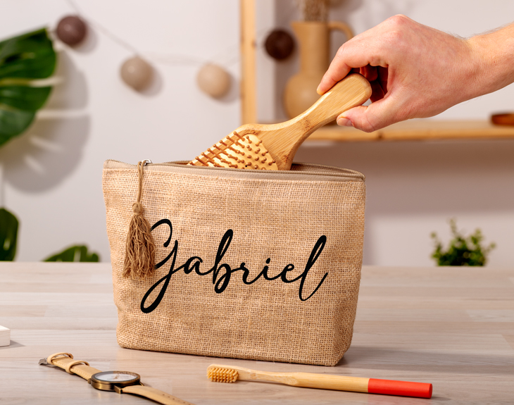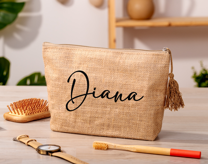 • Neceser arpillera personalizado. • Tarjeta Recordatoria.