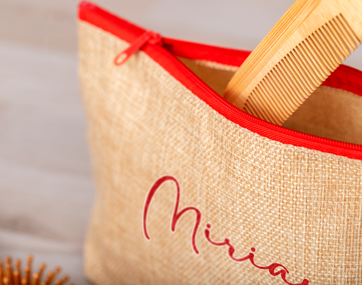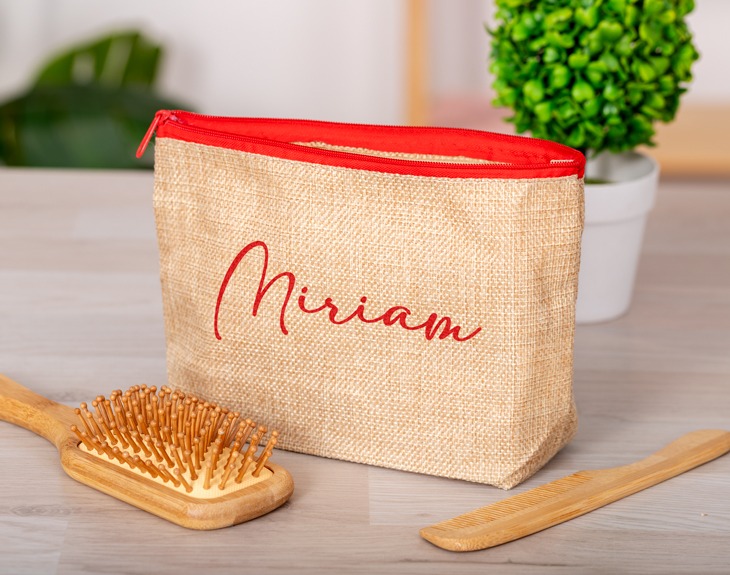 ¿Planeando tu próximo viaje? Asegúrate de que no te olvidas nada importante y guarda en tu maleta este práctico neceser personalizado. Es perfecto para guardar todas tus cosas de aseo o lo que quieras y te ayudará a mantener todo ordenado y no perder nada. Sin duda, este original neceser será el compañero de viaje perfecto. Y es que tiene el tamaño perfecto para guardarlo en tu maleta, mochila o bolsa de viaje. Además, está fabricado de arpillera, un material que le da un toque rústico que lo hace único. ¡Y cuenta con detalles rojos! Y espera porque vas a poder personalizar este neceser y ponerle tu nombre. Accede a nuestro diseñador, escribe el nombre que quieras en el área que te indicamos, colócalo a tu gusto y listo. Nosotros nos encargamos de que quede perfecto y listo para vivir miles de aventuras contigo. Medidas: 22 x 14 x 6,5 cm. Material: Arpillera.