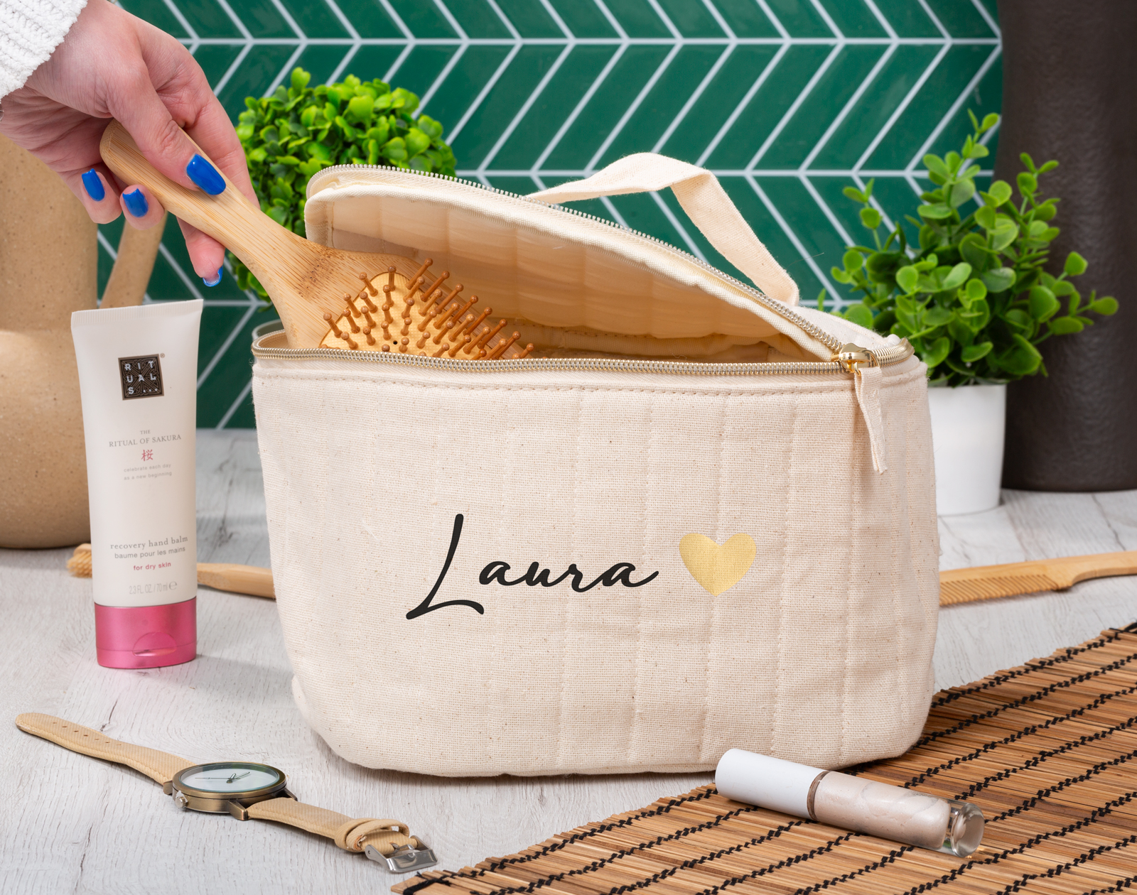 Viajar es una de las mejores experiencias que hay. Es super guay descubrir lugares nuevos, conocer personas de otros países y ver culturas nuevas. Y a la hora de preparar la maleta para ese viaje tan esperado, tenemos algo que no puede faltar... ¡Nuestro neceser beige personalizado! Es perfecto para poder guardar todas esas cosas para la higiene personal, como el cepillo de dientes, el peine, las cremas, lentillas... ¡Cabe de todo! Por otro lado, si conoces a esa persona que adora viajar y siempre está de un lado para otro con su maletita, este neceser se puede convertir en un regalo perfecto para cualquier ocasión especial. Además, lo mejor es que es personalizable. ¡Podrás escribir el nombre de esa persona tan viajera! Personalizar este neceser beige es muy sencillo. El primer paso a seguir consiste en añadir el producto al carrito y entrar al área de personalización. Una vez ahí, ya puedes escribir el nombre de esa persona tan especial. Pronto estará perfecto y listo para regalar. ¡Será un original regalo para viajeros! Importante: recuerda agrandar el texto para que el nombre se vea bien en el resultado final. Dimensiones: 23 x 14 cm.