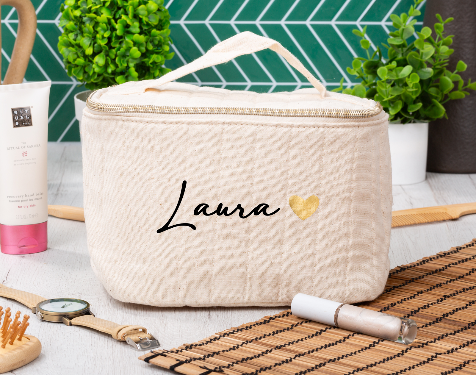 • Neceser Beige personalizado. • Tarjeta Recordatoria.