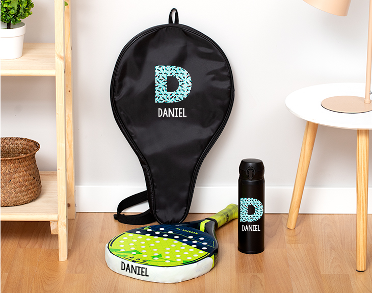 Fanáticos del pádel tenemos el regalo perfecto para vosotros: ¡nuestro pack para pádel personalizado! Si quieres ser el protagonista de todos los entrenamientos, no dudes que con este set robarás todas las miradas. Es genial porque incluye una funda y un protector para tu raqueta de pádel y un termo del color que más te guste para mantenerte siempre hidratado. ¡Es lo más! No hay mejor aliado que este original kit para pádel. Podrás llevarlo contigo a cada entrenamiento y cada partido y mantener tu raqueta siempre lista y como el primer día. Sin duda lo mejor es su adorable diseño, con iniciales de rayitos que hará que el pack se vea diferente. Pero también puedes regalar este set a esa persona que se acaba de iniciar en este deporte, así empezará de la mejor manera. ¡Se quedará sin palabras! Esta funda es perfecta para guardar tu raqueta porque tiene un único bolsillo con cremallera. Además, podrás llevar esta bolsa colgada gracias a su correa ajustable. ¡Lo tiene todo! Lo único que tienes que hacer para personalizar este pack al completo es añadir el producto al carrito y entrar en el área de personalización. Desde ahí podrás elegir qué inicial te gusta más de nuestro diseño 'Alfabeto Rayitos' para la funda y el termo y ya solo te queda escribir el nombre que irá en el protector. ¡Tendrás el mejor kit para pádel del mundo! Medidas funda: 50 x 30 x 3 cm. Longitud del asa: 91 cm (estirada al máximo) Medidas protector: 4,5 cm x 39 cm. Especificaciones del termo: - Altura de la botella: 22,5 cm. - Diámetro de la base: 6 cm. - Capacidad: 400 ml. - Colores disponibles: negro, blanco y plateado. - Material: Acero inoxidable.