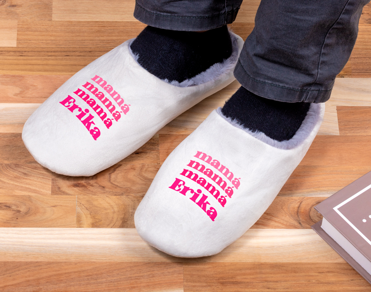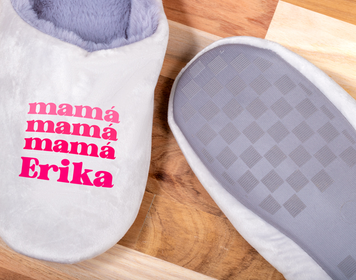 ¿Por qué no sorprender a mamá con un regalo original que convierta sus momentos de descanso en algo aún más especial? Te presentamos nuestras pantuflas personalizadas, con un diseño pensado especialmente para ella. Imagina ese instante mágico al llegar a casa, cuando por fin puede quitarse los zapatos y relajarse. Con estas pantuflas suaves y calentitas, mamá sentirá que camina entre nubes. Fabricadas en algodón de tacto delicado, con exterior en tono natural, interior acolchado en gris y suela antideslizante, son ideales para moverse con seguridad por toda la casa. Si buscas un detalle con el que emocionar en su cumpleaños o en el Día de la Madre, estas pantuflas originales son la elección perfecta. Y lo mejor: puedes personalizarlas con su nombre y hacer que ese pequeño momento del día se vuelva único y lleno de significado. Añádelas al carrito, entra en nuestro diseñador y escribe el nombre que hará de este regalo algo irrepetible. ¡Nosotros nos encargamos de que queden perfectas y tú solo tendrás que esperar a ver su sonrisa! Talla: 26 cm x 11,5 cm (36-38) Material: algodón/poliéster.