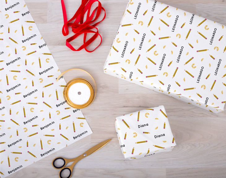 • Rollo de papel de regalo personalizado 160 x 70 cm. • Tarjeta Recordatoria.