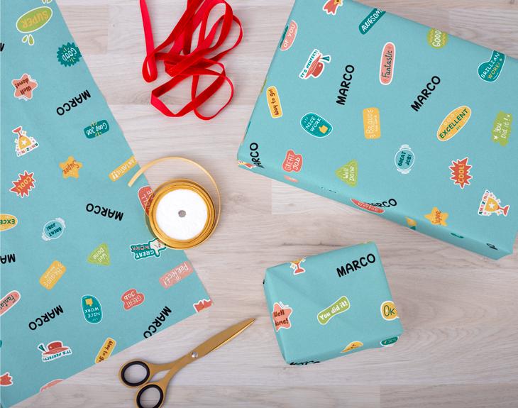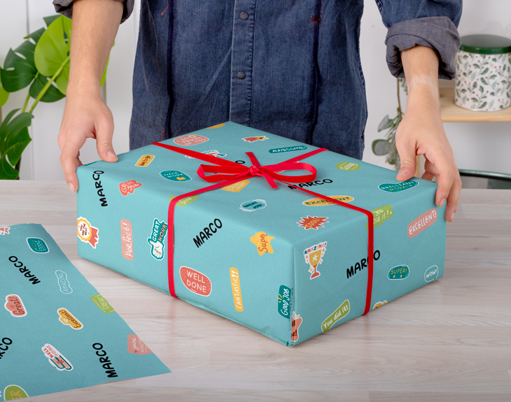 ¡Haz que tu regalo de fin de curso destaque de verdad! ¿Quieres sorprender a tu profe con un detalle único? Con nuestro papel de regalo personalizado conseguirás un toque original que hará que tu regalo se convierta en el más especial. Este fin de curso, envolver los regalos de los profes nunca había sido tan original. Gracias a su diseño de pegatinas, ¡el profe se llevará una sorpresa increíble! Este envoltorio tan original es justo lo que necesitas para convertir cualquier detalle de fin de curso en un regalo inolvidable. Personalizarlo es facilísimo: solo añade el producto al carrito, entra en el área de personalización y escribe el nombre que quieras. Así de fácil, ¡y listo para sorprender al mejor profe de este año! El papel es de alta calidad con el grosor ideal para que puedas envolver fácilmente tus regalos. No se trasparenta para que no se vea la sorpresa. Tamaño: 160 x 70 cm. Grosor: 80 gr. Calidad impresión: fotográfica. Importante: el papel se entrega como un producto más, no se envuelven otros productos con él.