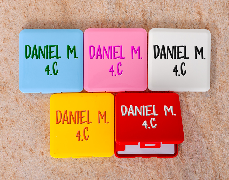 ¿Preparando la vuelta al cole o los primeros días de guardería? Este pack de etiquetas adhesivas personalizadas es justo lo que necesitas para marcar todo lo de tus peques… ¡y que no se pierda nada! Además de ser muy prácticas para el colegio o la guardería, también son ideales para campamentos, actividades extraescolares o incluso en casa. Incluye 86 etiquetas adhesivas de distintos tamaños y formas (hasta 8 diseños diferentes) para adaptarse a todo tipo de objetos: libros, mochilas, tuppers, juguetes, botellas, ropa, zapatos… ¡Márcalo todo para no perder nada! Puedes personalizarlas con 2 líneas de texto, de hasta 15 caracteres cada una, con el nombre, apellido o incluso un número de teléfono. Todo irá dentro de una práctica cajita que te ayudará a tenerlas siempre a mano y bien organizadas. Y personalizar estas etiquetas en caja es muy sencillo. Agrega el producto al carrito y entra a nuestra área de personalización. Allí podrás escoger el color de la cajita y, añadir el texto a las pegatinas. Un pack práctico, colorido y personalizable que te hará la vida más fácil. ¡El complemento ideal para empezar el curso con todo bajo control! IMPORTANTE: Nuestras etiquetas son resistentes al agua, pero su durabilidad depende de cómo se apliquen y cuiden. Asegúrate de colocarlas sobre una superficie limpia y seca, presionando bien para que no queden burbujas. Para una mayor duración, recomendamos lavar a mano con cuidado, evitando frotar directamente sobre la etiqueta.