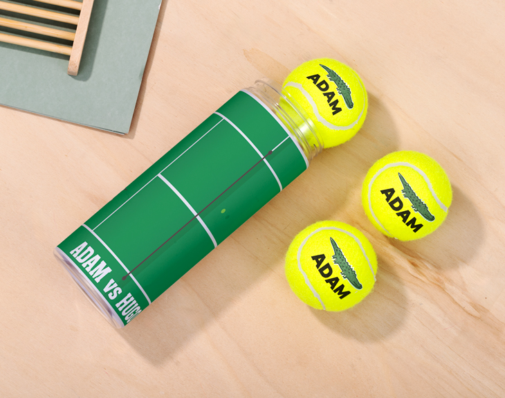 • Pelota de tenis/pádel personalizada . • Tarjeta recordatoria. Importante: no son pelotas de alta competición. Es un producto pensado con fines recreativos y lúdicos.