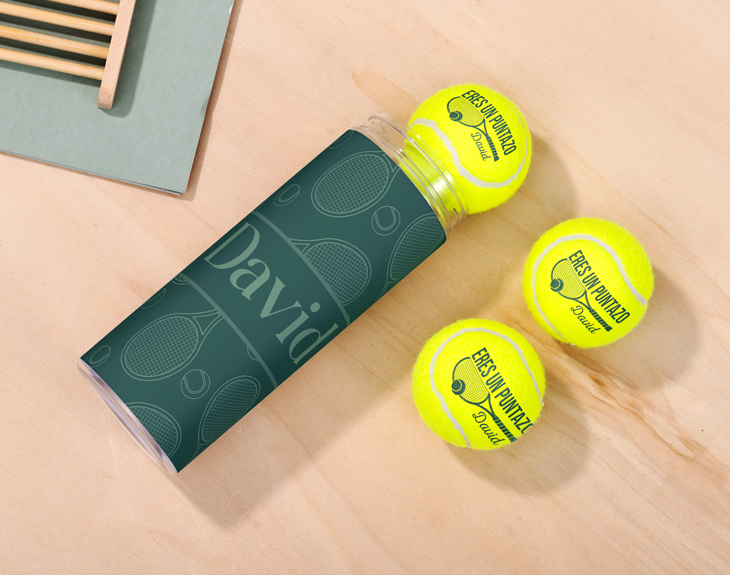 ¡El regalo más original para fans del tenis y del pádel ha llegado! Imagina recibir un pack de pelotas de pádel personalizadas con tu nombre. El detalle perfecto si se acerca una fecha especial: cumpleaños, amigo invisible, Día de la Madre o del Padre... ¡Acertarás en cualquier ocasión! Tanto si juegas al pádel como al tenis, este diseño es personalizable para que puedas elegir tu deporte favorito. Y por si fuera poco, también tienes la opción de añadir un bote personalizado a juego con tres pelotas. Todo pensado para los que son un auténtico puntazo, dentro y fuera de la pista. ¿Cómo personalizar estas pelotas? Primero, añade el producto al carrito. Luego, desde el área de personalización, solo tienes que completar el diseño de las pelotas (y el bote si lo has elegido) con el nombre que quieras. En muy poco tiempo recibirás un regalo único, con el que sorprenderás a quien lo reciba. ¡Perfecto para practicar su deporte favorito con un toque de estilo!