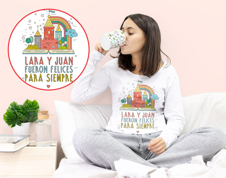 Si tu pareja parece sacada de un cuento, nuestro pijama personalizado es el detalle perfecto para darle las gracias por hacerte vivir una historia de amor tan increíble. Simplemente tienes que decirnos vuestros nombres y lo insertaremos en este diseño tan emotivo...¡Que viva el amor! Material - Camiseta invierno: 100% algodón (excepto color gris: 85% algodón / 15% viscosa). - Camiseta verano: 100% algodón (excepto color gris: 85% algodón / 15% viscosa). - Pantalón invierno: 100% algodón. - Pantalón verano: 100% algodón. Importante: Las medidas son aproximadas, pueden variar 5cm por encima o por debajo. Importante: el tono de los colores puede variar en intensidad según stock