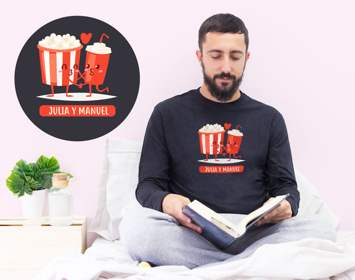 ¿Desde que conoces a tu pareja sientes que estás viviendo en una peli de Disney? Si vuestro amor es de cine y conocer a tu pareja es lo mejor que te ha pasado en la vida, este pijama personalizado tiene su nombre. Se convertirá en su uniforme oficial para esas noches de sofá, peli y palomitas en pareja. Y es que, además de tener un diseño increíble, es súper cómodo para tumbarse en el sofá a descansar. Solo tienes que decirnos vuestros nombres y los insertaremos debajo de estas palomitas y este refresco tan divertido y adorable. ¡Se quedará sin palabras al ver este detallazo! Material: - Camiseta invierno: 100% algodón (excepto color gris: 85% algodón / 15% viscosa). - Camiseta verano: 100% algodón (excepto color gris: 85% algodón / 15% viscosa). - Pantalón invierno: 100% algodón. - Pantalón verano: 100% algodón. Importante: Las medidas son aproximadas, pueden variar 5cm por encima o por debajo. Importante: el tono de los colores puede variar en intensidad según stock
