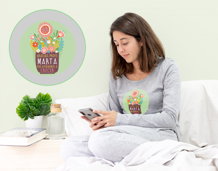 Si queréis darle una sorpresa a vuestro o vuestra profe por el final de curso pero no sabéis cómo, este pijama personalizada es la opción perfecta. Esta es una forma original y divertida de agradecer a vuestro profe todo lo que os ha enseñado y de demostrarle lo mucho que valoráis todo su esfuerzo y paciencia. Seguro que le conseguís sacar una sonrisa de oreja a oreja. Podréis escoger entre pijamas de verano, de invierno, de adultos e infantiles, además de escoger el color que creáis que más le va a gustar a vuestro profe. Solo tendréis que seleccionar el tipo, color y talla del pijama y decirnos cual es el nombre de vuestro o vuestra profe. ¡Le encantará! Material: - Camiseta invierno: 100% algodón (excepto color gris: 85% algodón / 15% viscosa). - Camiseta verano: 100% algodón (excepto color gris: 85% algodón / 15% viscosa). - Pantalón invierno: 100% algodón. - Pantalón verano: 100% algodón. Importante: Las medidas son aproximadas, pueden variar 5cm por encima o por debajo. Importante: el tono de los colores puede variar en intensidad según stock