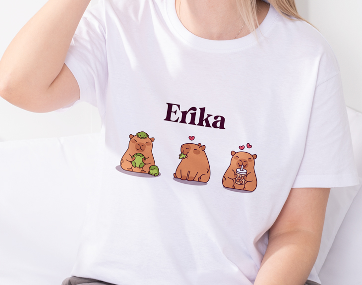 Si hablamos de pijamas, todos usamos uno cada noche, y es una de esas prendas que solemos renovar con frecuencia, ya sea por desgaste o por el cambio de estación. Por eso, te presentamos este pijama personalizado con un diseño de capibaras tan divertido que hará que tus noches sean aún más especiales. Puedes elegir el pijama que más te guste: verano, con manga corta y pantalón corto, o invierno, con manga larga y pantalón largo. Además, podrás seleccionar el color de la camiseta y la talla que necesites. Nuestros dulces sueños ya no serán nada aburridos. Es el regalo para cumpleaños, Navidad, Reyes o cualquier ocasión especial. Personalizarlo es muy sencillo: añade al carrito el pijama que prefieras, accede al área de personalización, elige entre los diseños de capibaras más divertidos, selecciona el color y la talla, escribe el nombre que quieras en el recuadro correspondiente y listo. El regalo original más bonito del mundo estará en camino. Material: - Camiseta invierno: 100% algodón (excepto color gris: 85% algodón / 15% viscosa). - Camiseta verano: 100% algodón (excepto color gris: 85% algodón / 15% viscosa). - Pantalón invierno: 100% algodón. - Pantalón verano: 100% algodón. Importante: Las medidas son aproximadas, pueden variar 5cm por encima o por debajo. Importante: el tono de los colores puede variar en intensidad según stock