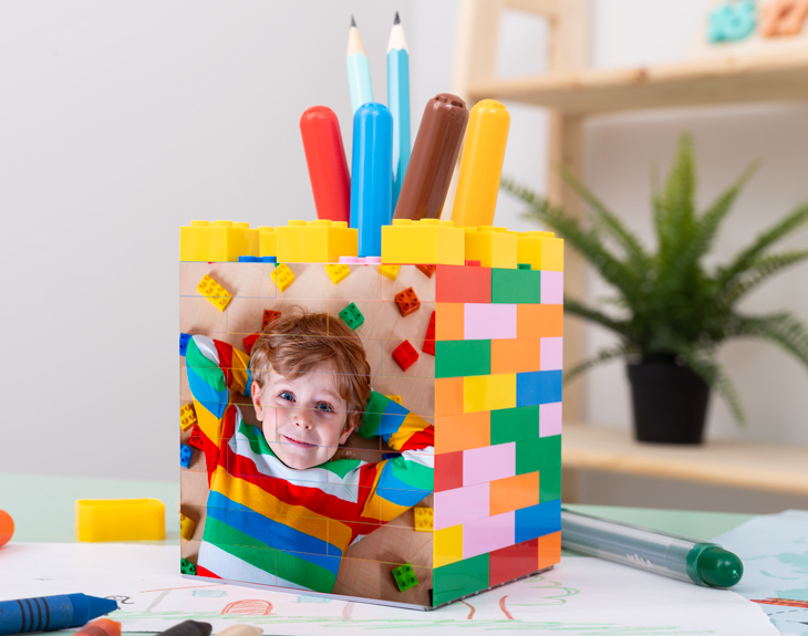 • Portalápices de bloques por piezas personalizado. • Tarjeta Recordatoria.