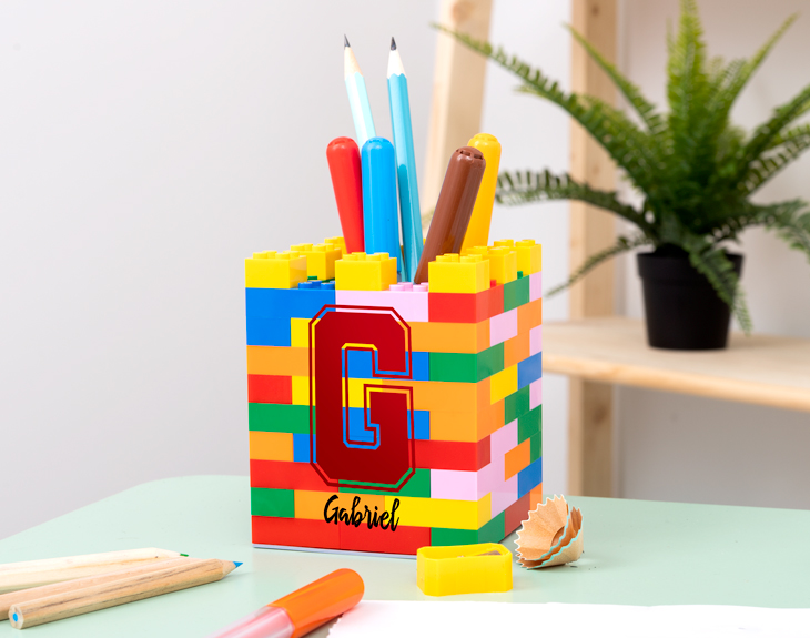 Si tú también te pasabas las horas jugando y haciendo construcciones con las famosas piezas legos, esto te va a encantar. ¿Qué mejor manera de rememorar los viejos tiempos que con éste portalápices de piezas lego? Le dará un toque súper personal y original a tu habitación, siempre que lo veas te traerá buenos recuerdos. Además, es perfecto para guardar el material escolar, los lápices, bolígrafos… Es el regalo perfecto que dejará a todos sin palabras. Lo que lo convierte en un regalo tan especial es que es personalizable. Si conoces a esa persona que adora estas piezas de bloques, éste portalápices es ideal. Es una manera de demostrarle a esa persona tan especial lo mucho que la quieres. Tiene un diseño súper guay, formado por una inicial en grande de nuestro alfabeto college, puedes elegir el color que quieres y la letra. Y justo debajo de la inicial puedes escribir el nombre que tú quieras. Para personalizarlo, el primer paso a seguir es añadir esta camiseta al carrito y entrar al área de personalización. Una vez ahí, podrás escribir el nombre o mensaje que tú quieras y nosotros lo plasmamos en la superficie. En todo momento, podrás ver cómo queda el estampado en la vista previa de nuestra web. Medidas: 10 x 8 x 8,5 cm (Alto x Ancho x Profundidad) Piezas: 80 aprox. El color y tamaño de las piezas varían según stock. Importante: la edad recomendada para jugar con estas piezas es a partir de 3 años.