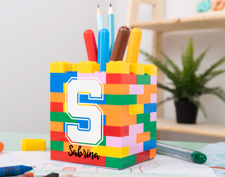 • Portalápices de bloques por piezas personalizado. • Tarjeta Recordatoria.