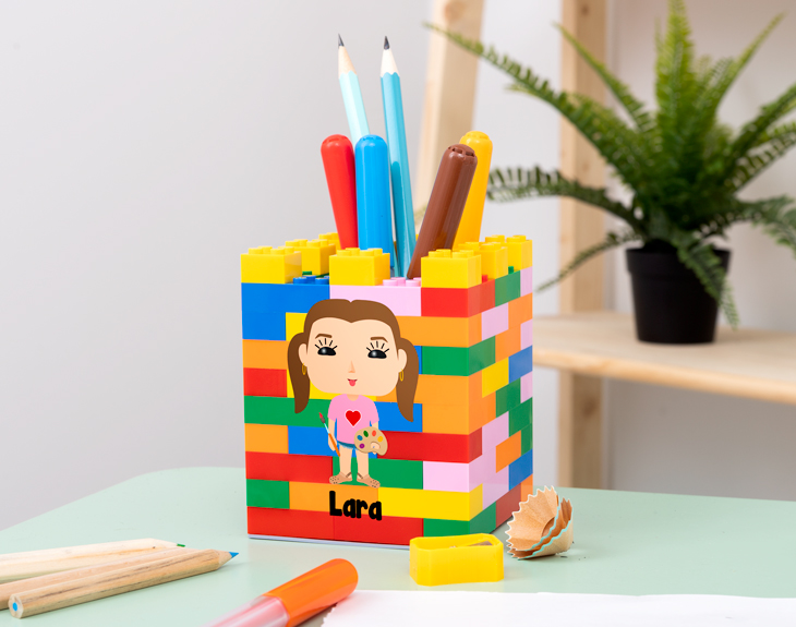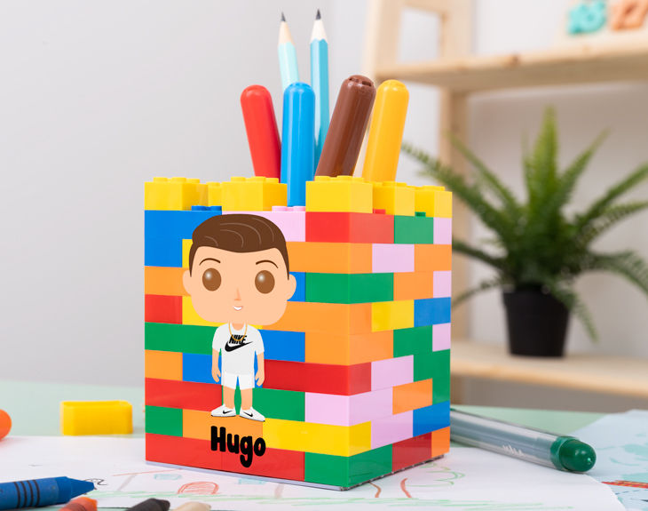 ¿Qué pasaría si mezclamos aquellos bloques de construcción de colores con el universo Tinok? Pues que tenemos el mejor regalo del mundo: ¡nuestro portalápices de bloques personalizado! Si tú también eras de esos niños que se pasaban horas y horas jugando con estos bloques de colores, con este regalo tan especial podrás rememorar tu infancia o sorprender a esa persona tan especial con un regalo que no olvidará nunca. ¡Le encantará! A todos nos encanta dejar sin palabras a alguien cuando le hacemos un regalo y ver su reacción. Por eso, sabemos que con este original portalápices de piezas de construcción con diseño impreso triunfarás en cualquier fecha especial. Porque hacer un regalo está bien, pero currarte un regalo con algo que sabes que le puede encantar a esa persona, eso ya es otro nivel. Y es que este portalápices es genial para los fanáticos de los Tinoks, porque podrán tener su propio muñeco impreso en este adorno. ¡No tendrán nada igual! Pero espera porque todavía tienes que personalizar este producto para que tu portalápices sea el más guay de todos. Añade el producto al carrito y entra en el área de personalización. Desde ahí, podrás crear tu propio personaje Tinok desde cero añadiendo todos los detalles que quieras, desde el pelo hasta la ropa. También, recuerda que este adorno es compatible con los bloques de Lego, por lo que podrás añadir todos los que quieras y crear una nueva estructura. ¡Es el mejor regalo del mundo! Medidas: 10 x 8 x 8,5 cm (Alto x Ancho x Profundidad) Piezas: 80 aprox. El color y tamaño de las piezas varían según stock. Importante: la edad recomendada para jugar con estas piezas es a partir de 3 años.