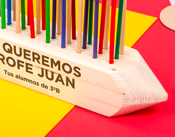 • Portalápices de madera gigante personalizado. • Tarjeta Recordatoria.