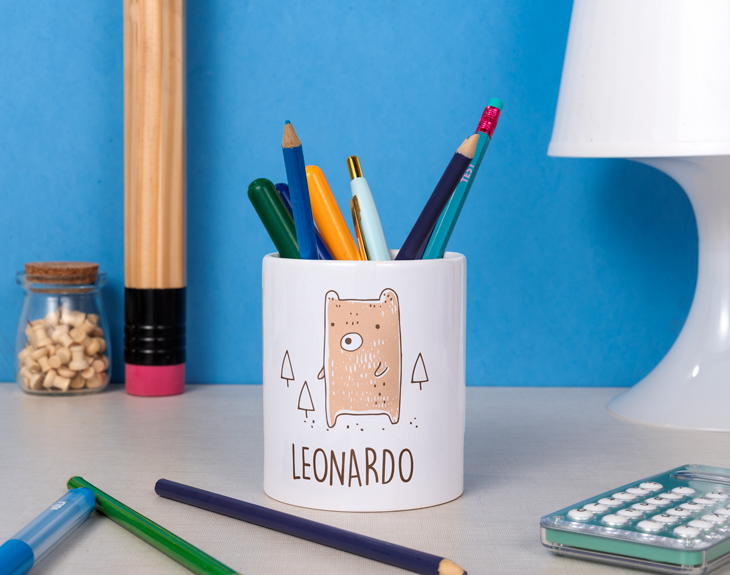 ¿Buscas una forma divertida y práctica de mantener el escritorio de tu peque ordenado? Este portalápices de cerámica personalizado, con adorables diseños de animalitos del bosque, es la solución perfecta. Ideal para organizar materiales escolares como lápices, pinceles o rotuladores, añadirá un toque de naturaleza y ternura a cualquier rincón de su habitación. Con ilustraciones de zorrito, conejito, búho y osito, en tonos suaves y estilos delicados, podrás escoger el diseño que mejor encaje con su personalidad. Además, la opción de personalizarlo con su nombre convierte este portalápices en un detalle único y especial, convirtiéndolo en un regalo original ideal para cualquier ocasión, desde cumpleaños hasta la esperada vuelta al cole. El proceso de personalización del portalápices con nombre es muy sencillo: solo tienes que añadirlo al carrito, elegir el diseño que más te guste y escribir el nombre deseado. Así tendrás un complemento bonito, práctico y lleno de encanto que acompañará a tu peque y le será de gran ayuda a la hora de hacer los deberes. Altura: 9,5 cm Diámetro: 8 cm
