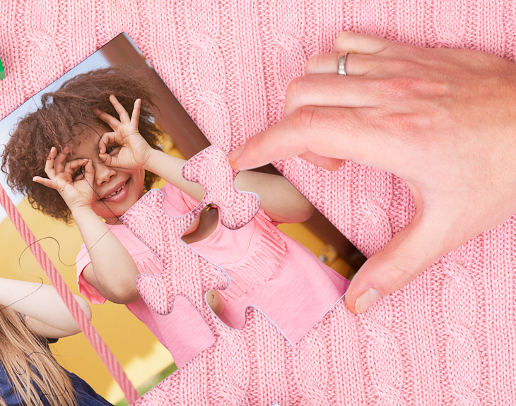 Nuestro puzzle de 6 piezas es perfecto para los niños que empiezan a reconocer las diferentes formas e imágenes. Preséntate en casa con este puzzle personalizado y dale una sorpresa enorme a tu niño o niña. Si ya empieza a jugar con cosas más elaboradas, este puzzle es perfecto para él. Escoge una foto divertida de él o de algún animal o personaje de dibujos animados que le guste, y ¡ya tenéis plan para las tardes de los domingos! Medidas: 20,5 cm x 15,3 cm.