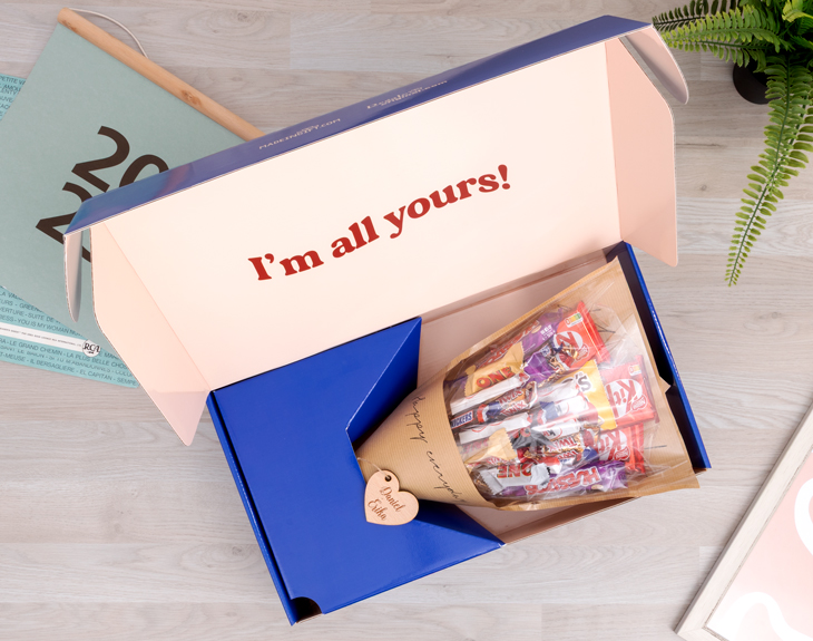 ¿Hay algo más romántico que regalar flores en el Día de los Enamorados? Si este año quieres sorprender a tu pareja con un detalle original, tenemos justo lo que necesitas: nuestro ramo de chocolatinas con corazón personalizado, una mezcla perfecta de dulzura y romanticismo. Lo que hace especial a este ramo es el corazón de madera personalizado que lo acompaña, el cual puedes personalizar con el nombre o mensaje que más te guste. ¡Imagina la sorpresa de tu pareja al ver su nombre en el corazón! Solo tienes que indicarnos qué deseas que inscribamos, puede ser un nombre o un fecha importante. Nosotros nos encargaremos de que quede perfecto. Un detalle tan tierno que expresará todo tu cariño. Este ramo es el regalo ideal para cualquier ocasión: San Valentín, un aniversario, un cumpleaños… O simplemente porque sí. Será un regalo muy especial y lleno de dulzura. Personalizar este ramo es muy fácil: Solo tienes que añadirlo al carrito, acceder al área de personalización e introducir el nombre o mensaje que deseas en el corazón. ¡Y listo! Pronto te haremos llegar este ramo preciosamente montado. ¡Es un regalo original para parejas! Recuerda que puedes elegir la opción de regalar este ramo con una caja hecha especialmente para ramos. Importante: El ramo contiene un mix de 25 chocolatinas (Kit Kat, M&M, Kinder, mini Toblerone, Huesitos, Snickers y Twix). Medidas aproximadas: 43 cm x 40 cm.