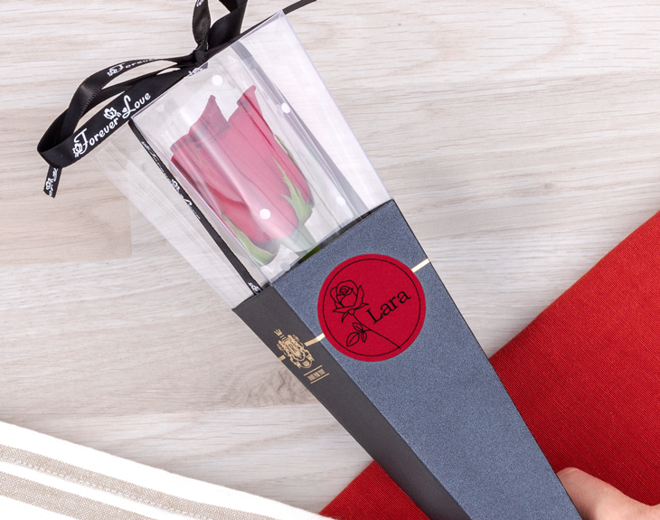 ¿A quién más le encanta Sant Jordi? Esta fecha, también conocida por muchos como el Día del Libro, es el momento perfecto para regalar esta preciosa rosa en cucurucho personalizado. Y es que si eres una persona de tradiciones, sabrás que en este día se suele regalar un libro junto a una rosa, así que hemos querido darle un toque diferente y añadirle este elegante cucurucho para que sea un regalo único. Este original regalo es ideal para sorprender a tu familia y amigos en este día tan especial marcado por la literatura y la tradición. Nosotros nos encargamos de añadir a este cucurucho negro una rosa natural y tú te encargas de persoanlizar este detalle para darle un toque único y muy especial. Y para poder personalizar este cucurucho, el primer paso es añadir el producto al carrito. Después, solo tienes que escribir el nonmbre de la persona que tú quieras y listo. ¡Tendrás el regalo perfecto para Sant Jordi! Medidas del cucurucho:25,5 x 8,5 centímetros.