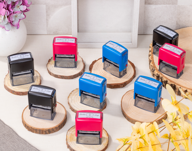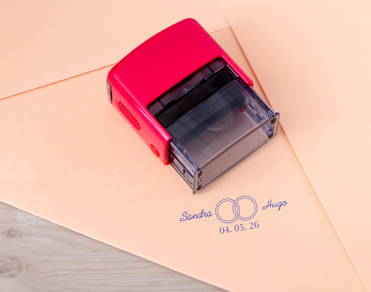 Ha llegado el día más importante de tu vida: ¡te vas a casa con el amor de tu vida! Por eso, es el momento perfecto para sorprender a todos tus invitados con estos sellos personalizados que serán un detalle único y súper divertido para el momento después de la ceremonia. Es ideal para que paséis un rato muy entretenido todos juntos y podáis customizar lo que queráis. Deja estos originales sellos en todas las mesas para que cada invitado coja el suyo, todos tendrán la misma personalización pero serán un regalo único para esta fecha tan especial. Lo mejor es que podrás elegir tanto el color del sello (rosa, azul o negro) como las unidades que quieres comprar. ¡Dejarás a todos sin palabras! No te preocupes porque personalizar estos sellos es muy sencillo. Añade el producto al carrito y entra en el área de personalización. Lo único que tienes que hacer es completar este precioso diseño de alianzas con el texto que quieras y listo. ¡Tendrás el mejor regalo del mundo para el día de tu boda! Medidas del sello: 6,5 x 5 x 3 cm. Medidas del estampado: 4 x 1,5 cm. Importante: La tinta del sello siempre es azul, independientemente del color del cabezal.