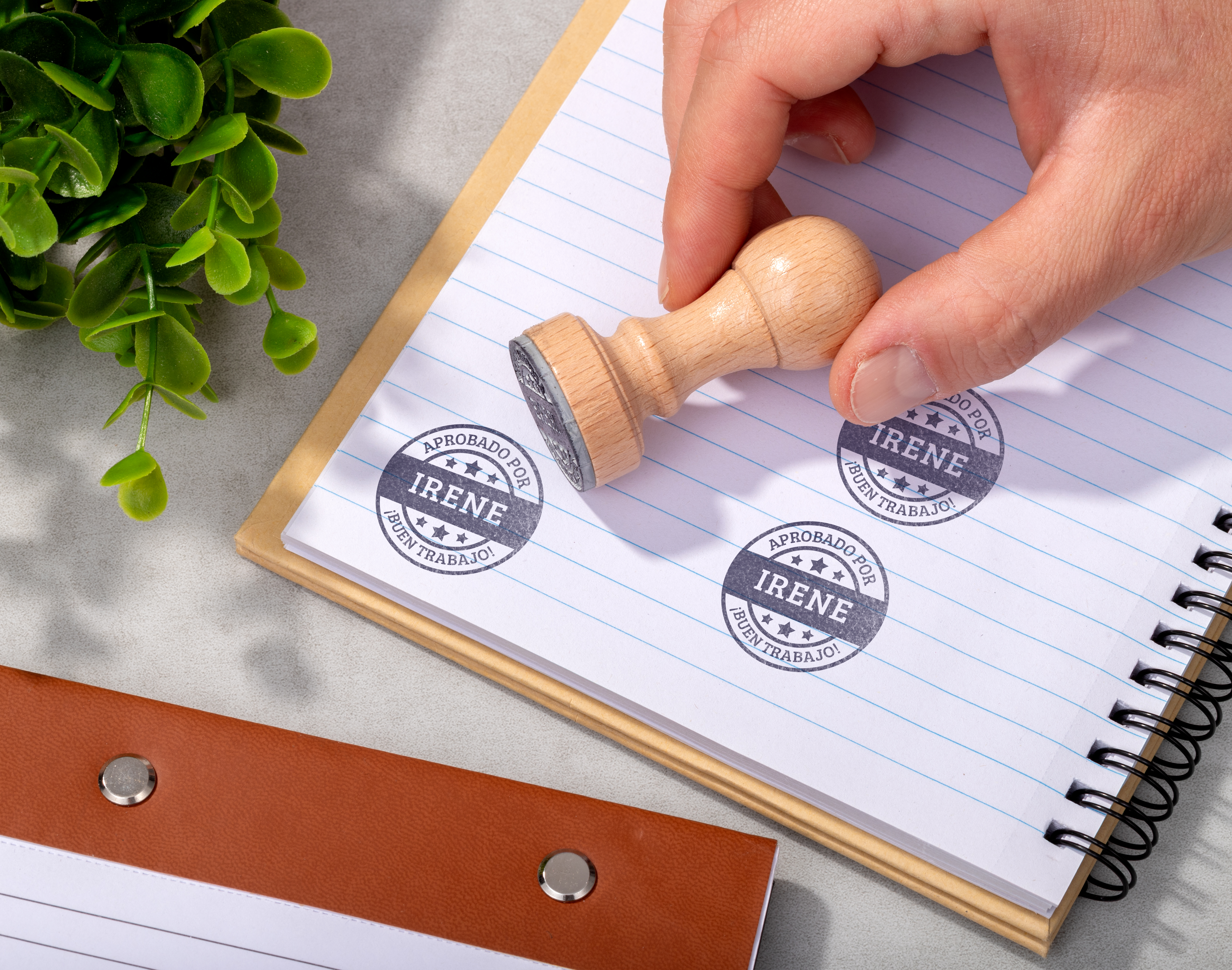 Todos los profes saben lo agotador que puede ser pasarse los días corrigiendo exámenes y trabajos. por eso, si queréis ser los mejores alumnos del mundo, tenéis que sorprender a vuestro profe con su propio sello de madera personalizado. Será un regalo único que nadie más tendrá y que le hará único en todo el colegio. Ahora que se acerca fin de curso, es el momento perfecto para darle una sorpresa a vuestro profe favorito. Y que mejor que regalarle este original sello que le dejará sin palabras. Seguro que le encanta poder estampar este bonito arcoíris en todos esos exámenes y trabajos para sorprender a sus alumnos el curso que viene. ¡Es lo más! Si queréis que vuestro profe deje huella los próximos años, solo tenéis que personalizar este sello. ¿Cómo podéis hacerlo? Muy sencillo. Al acceder al área de personalización, vais a poder un arcoíris, que es el diseño que irá en el sello. Solo tenéis que completarlo con su nombre y listo. ¡Será el mejor regalo para profes! Diámetro: 3 cm IMPORTANTE: Este producto no incluye tinta.