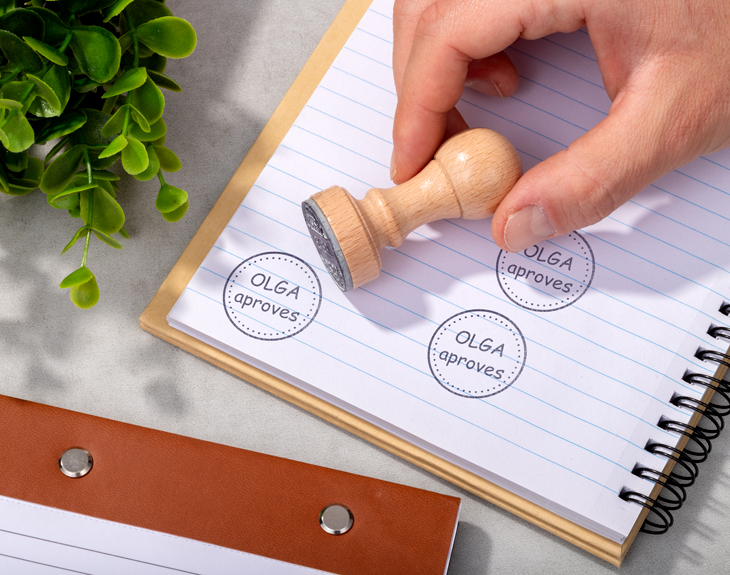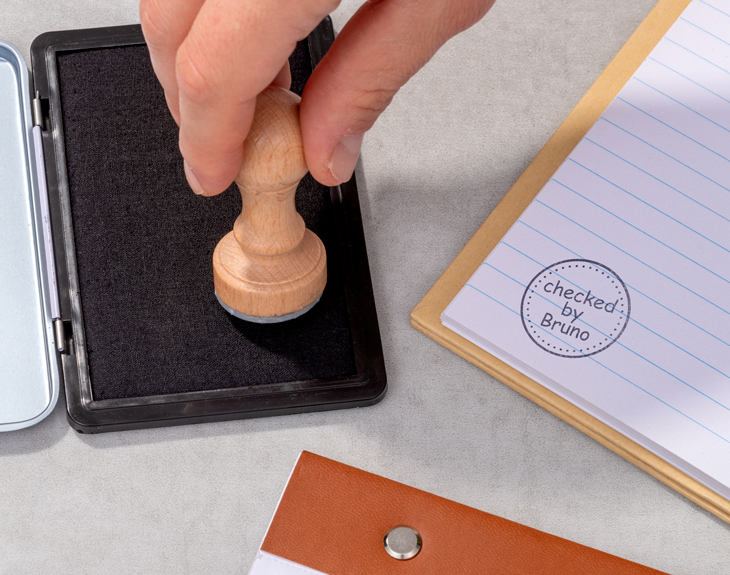 • Sello redondo de madera personalizado (no incluye tinta). • Tarjeta Recordatoria.