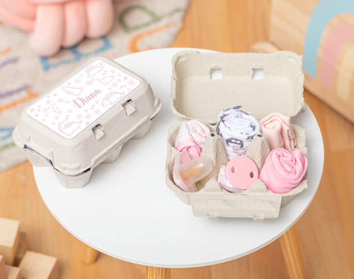 La llegada de un bebé a la familia es un acontecimiento único y lleno de alegría y felicidad. Por eso, si quieres sorprender a esa pareja que acaban de ser papis, hazlo con esta huevera personalizada. En su interior podrás encontrar un montón de pequeños detalles ideales para que la pequeña pueda estrenarlos en sus primeros meses de vida. ¡A sus padres les encantará! Si quieres triunfar hazte con este original regalo que dejará sin palabras a cualquier papá o mamá, porque seguro que no se esperan recibir una huevera llena de cositas tan monas y adorables. Además del precioso diseño en la parte superior de la huevera, este kit incluye un montón de cosas para la bebé: un chupete, un sujeta chupetes, un gorrito, una camiseta de tirantes, unos calcetines y un babero. ¡Todo de color rosa! Pero para hacer de este regalo algo único y muy emotivo, no te olvides de personalizar la huevera. Añade el producto al carrito y entra en el área de personalización. Completa el adorable diseño de dinosaurios rosas con el nombre de la pequeña y nosotros nos encargamos del resto. ¡Será el regalo más bonito del mundo! Medida: 18 cm x 12 cm. Talla: 0-3 meses.