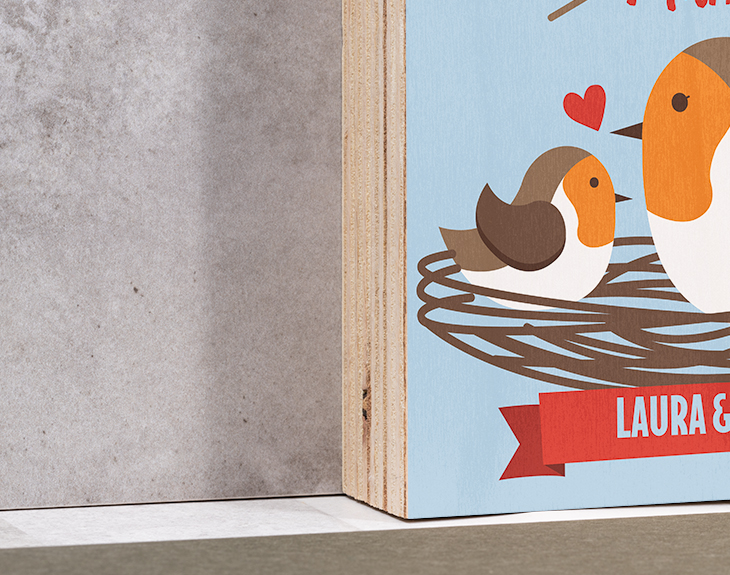 • Tabla de madera 27 x 27 cm. • Tarjeta recordatoria.