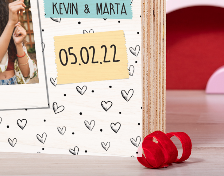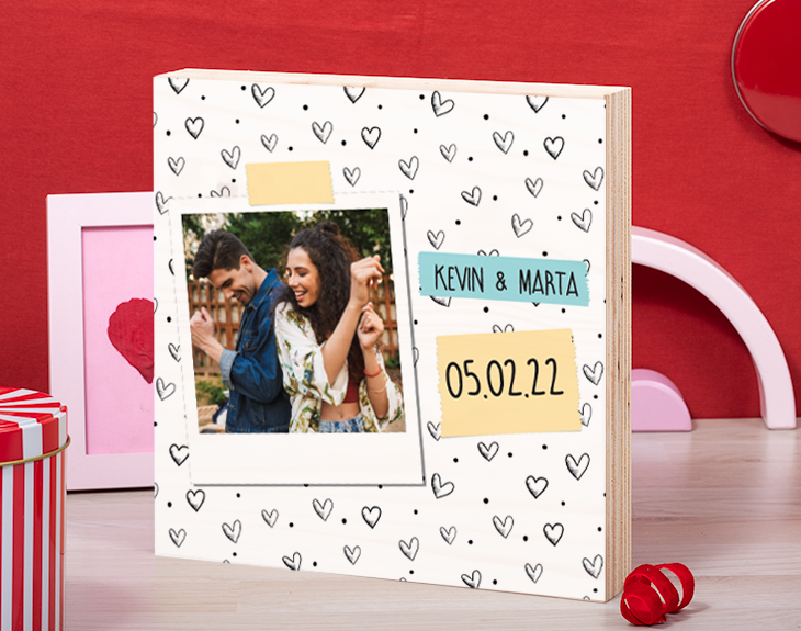 Se acerca una de las fechas más románticas del año, por eso, si quieres celebrar el amor junto a la persona que te hace feliz y darle una sorpresa, nuestra tabla de madera "Pareja Polaroid" es una gran opción. Cualquier ocasión es una buena excusa para mostrarle a tu pareja que lo más bonito que te ha podido pasar en la vida es que se cruzase en ella...¿Y qué mejor que con un recuerdo especial? Solamente tienes que escoger una fotografía que os lleve a un momento emotivo juntos y la insertaremos en este diseño tan amoroso. ¿No te parece una gran idea? Importante: Las maderas tienen vetas y estas quedan reflejadas en la imagen.