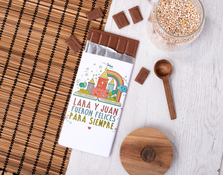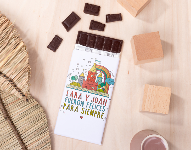 Si tu historia de amor es la más dulce de todas, sorprende a tu pareja con esta tableta personalizada. Una forma muy romántica de darle las gracias por todo lo que hace por ti y demostrarle que quieres estar siempre a su lado. Además, si tu príncipe o princesa es la persona más golosa que conoces, este detalle será el regalo que más ilusión le haga de todos. Solamente necesitamos que nos digas vuestros nombres y el tipo de chocolate que quieres. Chocolate negro y leche: 125 gr. Chocolate blanco: 200 gr.