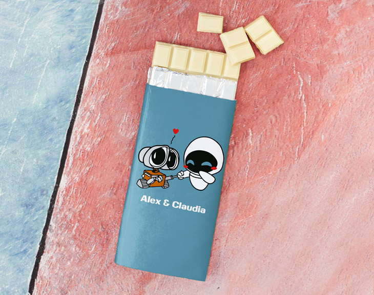 Deja sin palabras a esa persona que endulza cada uno de tus días con esta tableta de chocolate personalizada tan romántica. Y es que, si quieres agradecerle todo lo que hace por ti de la manera más especial del mundo, esta es la opción perfecta. Además de ser un regalo súper dulce tiene un diseño adorable de los personajes de Wall-e que le enamorará nada más verlo. Pero lo mejor no es eso, lo más guay de este detalle es que igual tienes suerte y decide compartir contigo alguna onza de chocolate. ¿No se te hace la boca agua de solo pensarlo? Al adquirir el producto (y antes de pagar) se te preguntará el tipo de chocolate que quieres (con leche, blanco o negro).