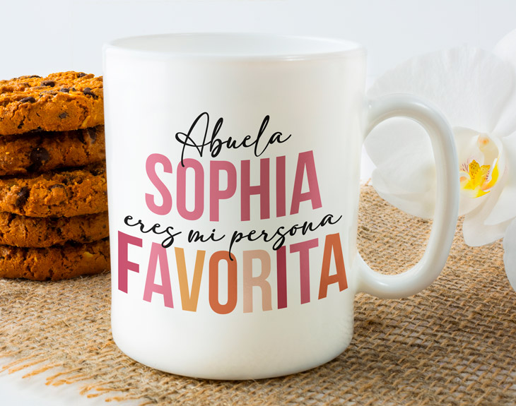 Coincidimos en que una abuela debería ser eterna y estar con nosotros toda la vida. Es la que mejor nos cuida, nos hace nuestra comida favorita, juega con nosotros, nos lleva al colegio... Todo eso cuando papá y mamá no pueden hacerlo. Por eso, si tu abuela es tu persona favorita y quieres decírselo de una manera muy especial, hazlo con esta taza personalizada. Se convertirá en el mejor regalo que le hayas hecho nunca, porque está pensado especialmente para ella. ¡Le encantará! Las abuelas también puedes ser las protagonistas durante el Día de la Madre, porque son mamás y abuelas al mismo tiempo. Por eso, es el momento perfecto para sorprenderla con esta original taza y su precioso diseño especial para todas las abuelas. De cerámica y con una capacidad de 33 centilitros, se convertirá en su taza favorita para desayunar todas las mañanas. Además, le servirá para acordarse siempre de sus nietos y eso si que no tiene precio. Pero antes de terminar, tocapersonalizar esta taza para tu abuela. Elige cuántas tazas quieres, añade el producto al carrito, entra en el apartado de personalización y comienza a crear tu diseño. Lo único que tienes que hacer es escribir el nombre de tu abuela en el espacio vacío y colocarlo a tu gusto. ¡Será el mejor regalo del mundo!