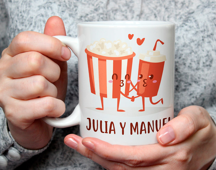 ¿Vuestra relación es digna de una peli romántica? Si estás viviendo una historia de amor de las que ya no quedan, estas tazas personalizadas son perfectas para hacer un bonito y divertido regalo a la persona con la que compartes tu vida. Además, si ambos sois súper cinéfilos y os encanta ir al cine juntos y hacer maratón en cada de vuestras pelis favoritas, estas tazas tienen vuestros nombres. Y es que, además de hacer un bol enorme de palomitas, también podréis disfrutar de vuestras bebidas preferidas en una taza así de especial. ¿No te parece un regalo muy original?¡Le encantará!