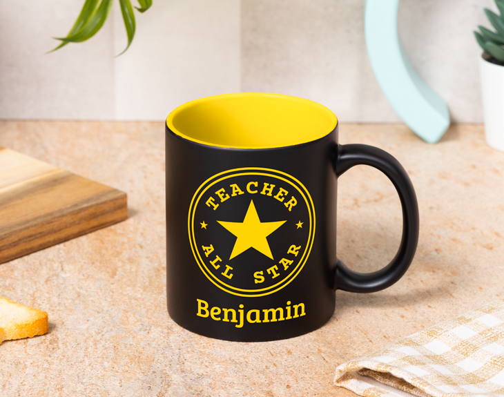 Si buscas un detalle útil, emotivo y único, has llegado al lugar perfecto. Nuestra original taza personalizada lo tiene todo. Un diseño personalizable con nombre, ideal para comenzar el día con un delicioso café. ¡La mejor taza del mundo! Sin duda, será un regalo de fin de curso que emocionará al profe que lo reciba. Esta taza bicolor tiene un diseño que cualquier profe adorará. Y lo mejor de todo: podrás personalizarla con el nombre que desees, ¡así no habrá dudas de quién tiene la mejor taza del mundo en la sala de profesores! Además, podrás elegir el color del interior que más te guste: rojo, naranja, rosa, verde o amarillo. ¡Quedará genial! Y si eso no es suficiente, también podrás personalizar el asa con el texto que prefieras. ¡No hay mejor regalo para profesores que este! Personalizarla es muy fácil: solo tienes que añadir la taza al carrito, seleccionar el color que más te guste, agregar el nombre del profe y nosotros nos encargamos del resto. Así de sencillo. Un regalo original para el fin de curso, porque hay profes que merecen esto y mucho más.