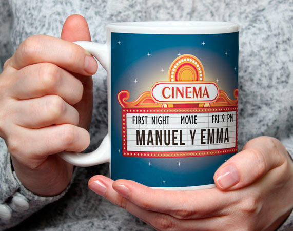 Con esta taza personalizada, los desayunos serán de cine. Dinos el texto que quieras y lo convertiremos en el típico cartel de un cine clásico. Al adquirir el producto (y antes de pagar) se te preguntará el texto para la taza.