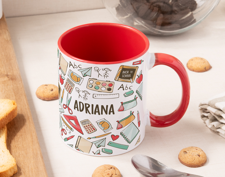 ¡Tenemos el regalo perfecto para profes! Se trata de esta taza personalizada “Cosas del profe”. Sin duda, esta taza es una preciosa forma de agradecerle todo el esfuerzo, cariño y dedicación que ponen para preparar sus clases. Y es que, un profe tiene un gran poder sobre sus alumnos, puede hacer que su asignatura te parezca un rollo o sea súper interesante. Es ideal para motivar a estos profesionales en sus mañanas escolares. La taza perfecta para ese amigo que va a comenzar en su primer trabajo como profe o para ese profe que ya le llega la jubilación. ¡Acertarás seguro con esta taza personalizada! El original diseño está pensado expresamente para los amantes de esta profesión. Además, ¡es personalizable! Personalizar esta taza es súper sencillo. El primer paso a seguir consiste en añadir el producto al carrito y entrar al área de personalización. Una vez ahí, escribes el nombre de esa persona tan especial y nosotros nos encargamos de todo lo demás. Pronto estará perfecta y lista para regalar. ¡Un regalo súper original! Al comprar este diseño podrás elegir el tipo de taza que quieres entre nuestras seis opciones disponibles en el desplegable: cerámica, mágica, plástico, con el interior en color, con cuchara o con asa en forma de corazón. En el lado derecho encontrarás la guía de tazas con las características de cada una de ellas. ¡Escoge el estilo y la cantidad de tazas que quieras!