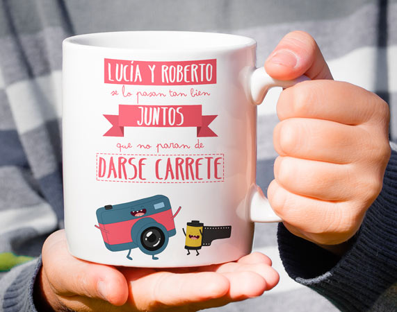 Pocas cosas enamoran más que la típica conversación infinita. ¿Tu pareja y tú os pasáis la vida hablando de absolutamente todo y a cualquier hora del día? En ese caso, esta taza os llegará al corazón. Al adquirir el producto (y antes de pagar) se te preguntarán los nombres para la taza.