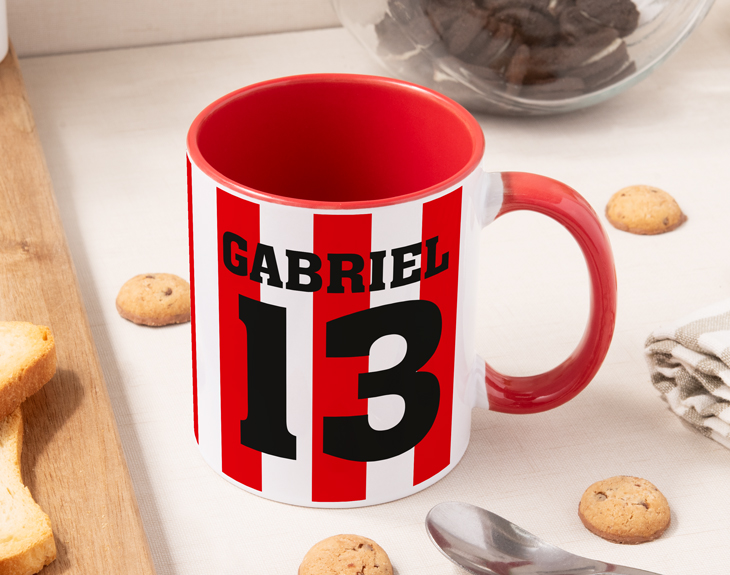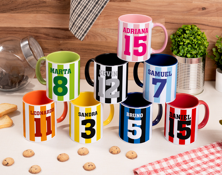 El fútbol es uno de esos deportes que más pasiones levanta. Y es que, tiene millones de fans repartidos por todo el mundo. Estamos seguros de que tú también conoces a esa persona súper fanática que no se pierde ningún partido y que lo vive como si le fuera la vida en ello. Si quieres tener un detalle, nuestra taza con estampado de camiseta de fútbol le encantará. O por el contrario si tú eres ese tipo de persona y quieres darte un caprichito, esta taza es un autorregalo increíble. Si además se junta con que esa persona también adora el café habrás dado en el clavo. Conseguirás que sonría desde primera hora de la mañana. A cada sorbo que dé en esta taza se acordará de su equipo favorito y de lo mucho que lo aprecias. Esta taza se puede personalizar de muchas maneras, puedes elegir el estampado que tú quieras dentro de nuestros modelos y también puedes escribir el nombre que quieras y escoger el número. ¡Será el regalo perfecto! Y te preguntarás… ¿Cómo se personaliza esta taza de fútbol? Los pasos son muy sencillos. Lo primero es añadir el producto al carrito y entrar al área de personalización. Una vez ahí, escribes el nombre que quieras y nosotros lo plasmamos en la superficie de la taza. Importante: el tono de los colores puede variar según stock. Capacidad: 33 centilitros. Material: cerámica.