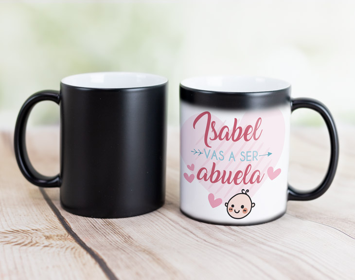 ¿Lleva tiempo insistiendo en que quiere ser abuela? Si por fin ha llegado el momento, estás esperando un bebé y quieres decírselo a tu madre o suegra de la manera más especial y divertida, esta taza mágica es una forma fantástica. Al recibir el producto pensará que es una taza negra sin más, sin embargo, cuando se prepare una bebida caliente descubrirá el mensaje oculto que contiene, ¡y qué mensaje!. Solo tienes que decirnos su nombre y nos encargamos de insertarlo en el diseño para que sea aún más especial. Se trata de un regalo original que guardará para siempre. Y es que, esta noticia marcará un antes y un después en vuestras vidas. A partir de ahora la abuela solo tendrá ojos para su nieto o nieta...¡Seguro que se le salta alguna lagrimita de emoción! Importante: La taza es apta para microondas. Importante: esta taza NO es apta para el lavavajillas. Puede perder el color negro de la superficie.