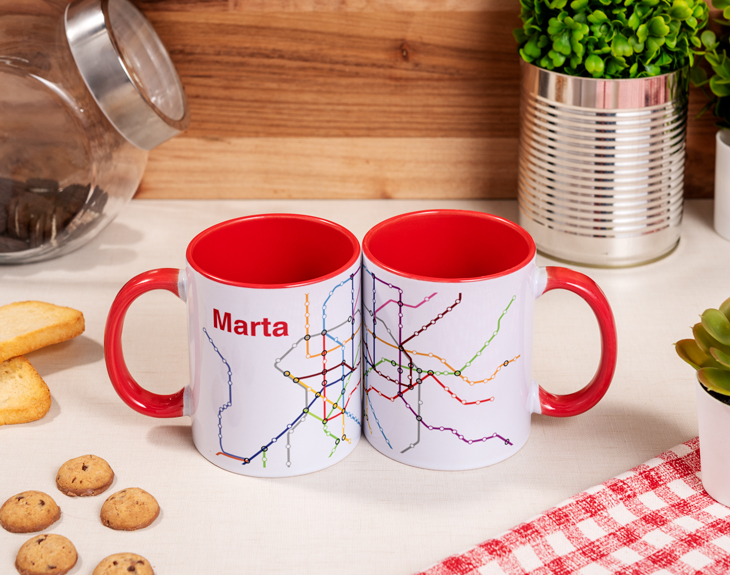 Se podría decir que la taza perfecta no existe... Pero nosotros sabemos que eso no es verdad porque nuestra taza personalizada con el plano del Metro de Madrid se acerca mucho a la perfección. Y es que es el regalo perfecto para sorprender a esa persona que es un poquito friki de los transportes y se sabe todas y cada una de las paradas. ¡Le va a encantar! Porque siendo sinceros, ¿a quién no le gustaría disfrutar de un buen café en esta original taza? Es genial porque mientras desayunas, podrás averiguar a qué parada pertenece cada puntito. Así, empezar la mañana es mucho más divertido. Y por supuesto, esta taza es un regalo único y diferente que no tendrá todo el mundo, así que vas a triunfar. Pero espera que todavía queda lo mejor. Vas a poder personalizar esta taza con tu nombre o el de quien tú quieras para hacer de ella un detalle perfecto. Entra en nuestro diseñador y escribe un nombre en el espacio vacío que te dejamos junto al diseño y listo. ¡Será el regalo más divertido! Al comprar este diseño podrás elegir el tipo de taza que quieres entre nuestras seis opciones disponibles en el desplegable: cerámica, mágica, plástico, con el interior en color, con cuchara o con asa en forma de corazón. En el lado derecho encontrarás la guía de tazas con las características de cada una de ellas. ¡Escoge el estilo y la cantidad de tazas que quieras!