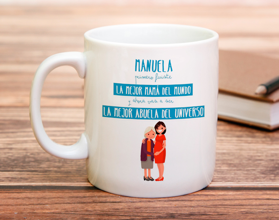 Si tu madre es la mejor mamá del mundo, seguro que se convierte en la mejor abuela del universo. Esta taza es el regalo perfecto para el día de la madre, para un cumpleaños o simplemente para celebrar que la familia crece. Durante el proceso de pago (antes de pagar) se te preguntará el nombre para preparar la taza.