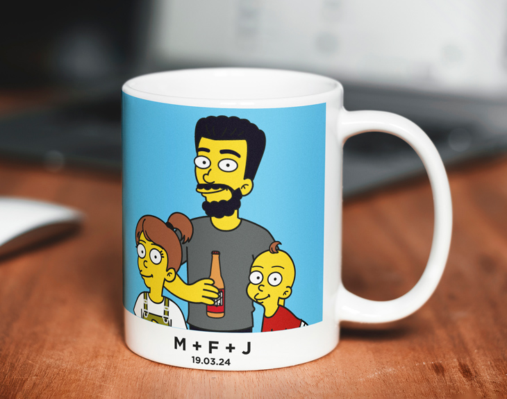No existe familia más peculiar que Los Simpson. Cada día viven una aventura diferente pero al final siempre se mantienen unidos y se preocupan los unos por los otros. Si papá es parecido a Homer en algunos aspectos y además le encanta esta serie, nuestra taza personalizada es el regalo que necesitas para sorprenderle. Olvídate de los típicos regalos porque sin duda esta taza es única. ¡Le encantará! No hay mejor manera de empezar el día que con esta original taza hecha para todos los padres que lo dan todo por sus hijos. Porque tomar café en esta súper taza hará que papá empiece cada mañana con la mejor energía del mundo y acordándose siempre de su familia. Gracias a su diseño, os convertiréis en auténticos vecinos de Springfield, el barrio de Los Simpson. ¡Será genial! Llega el momento de personalizar esta taza y no te preocupes porque es súper fácil. Elige el modelos que quieras, añade el producto al carrito y entra en el área de personalización. Una vez ahí, podrás comenzar a crear tus propios personajes desde cero y con todos los detalles necesarios para que sean igualitos que vosotros. ¡Quedarán ideales en esta súper taza! Al comprar este diseño podrás elegir el tipo de taza que quieres entre nuestras seis opciones disponibles en el desplegable: cerámica, mágica, plástico, con el interior en color, con cuchara o con asa en forma de corazón. En el lado derecho encontrarás la guía de tazas con las características de cada una de ellas. ¡Escoge el estilo y la cantidad de tazas que quieras!