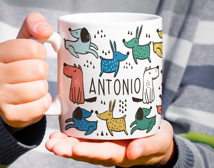 ¿Acaso hay algo más mono que los perretes? Si tú también conoces a alguien que quiere más a su perro que a nadie en el mundo, esta taza personalizada tan divertida tiene su nombre. Y es que, imagínate la cara que pondrá cuando vea este diseño lleno de perros y su nombre en el centro...¡No se nos ocurre algo que pueda hacerle más ilusión! Además, es el detalle perfecto para que cada mañana cuando tenga que levantarse para dar un paseo a su mascota desayune en esta super taza y se llene de energía para afrontar el resto del día. Seguro que se convierte en su taza preferida y se prepara ahí los mejores cafés o tés. Solo tienes que decirnos su nombre para poder comenzar con la personalización y le harás el mejor regalo de todos...¡Se morirá de amor al ver tantos perretes monetes juntos!