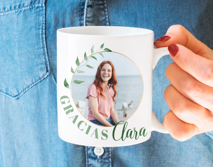 "Gracias" es una de las palabras más utilizadas de nuestro vocabulario. Estamos continuamente repitiendo este conocido vocablo en nuestro día a día: cuando nos dejan pasar en el transporte público, cuando nuestra madre nos hace la comida, cuando nos hacen un regalazo... ¡utilizamos ese "gracias" constantemente! Y es que agradecerle algo a alguien es una de las cosas más bonitas que podemos hacer en nuestro idioma. Un "gracias" no cuesta nada, y hace que todos nos sintamos bien con nosotros mismos. ¿Tienes que agradecerle algo enorme a una de las mejores personas de tu vida? Es el momento de sorprenderle/a con esta taza personalizada. Dale las gracias de una manera peculiar con este producto, que cuenta con un diseño natural y de lo más mono. ¡Recordará lo buena persona que es siempre que se haga su café mañanero! Personaliza este detalle con su mejor foto y un texto bonito. De esta manera se convertirá en un regalo original, único y tremendamente emocionante.